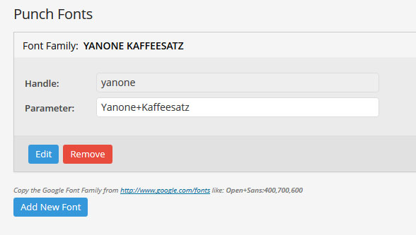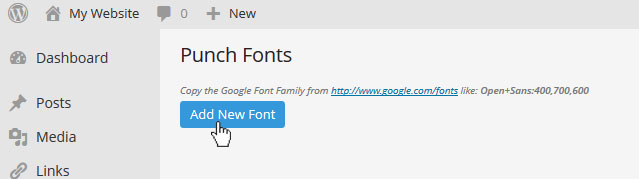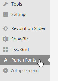 왼쪽의 워드프레스 어드민 메뉴중에서 Punch Fonts를 찾는다. 이 플러그인은 레볼루션 슬라이더를 만드는 "테마펀치"社 에서 구글 폰트공급용으로 만든 플러그인이다. 레볼루션 슬라이더를 설치하면 자동으로 동시 설치 된다.