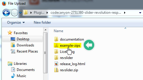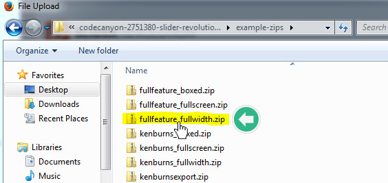다음 코드캐년에서 다운받은 파일을 압축해제한 폴더내에서 example-zips폴더를 찾아 클릭하여 들어간후 가져오고 싶은 데모 슬라이더를 선택하여 아래의 그림과 같이 가져온다: