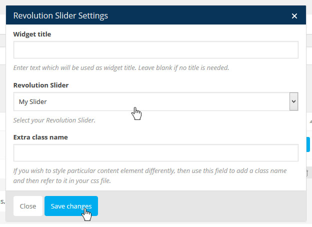 - ON: 모든 페이지에 CSS와 JS 파일을 로딩한다. 만약 레볼루션 슬라이더를 PHP코드로 사이트에 삽입하였거나, 위젯안에 슬라이더를 넣었다면 이 옵션을 사용한다.