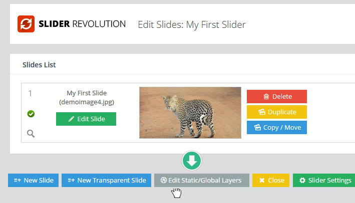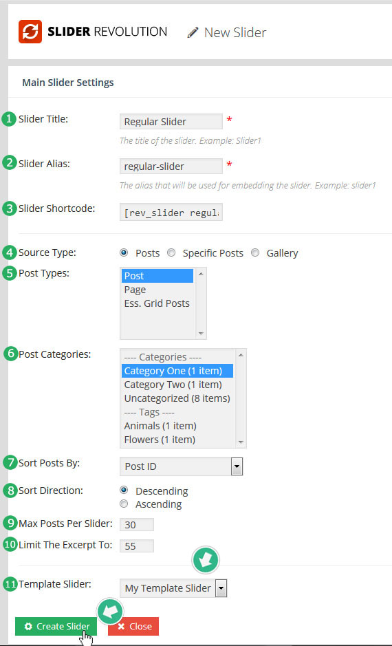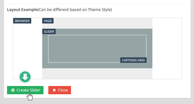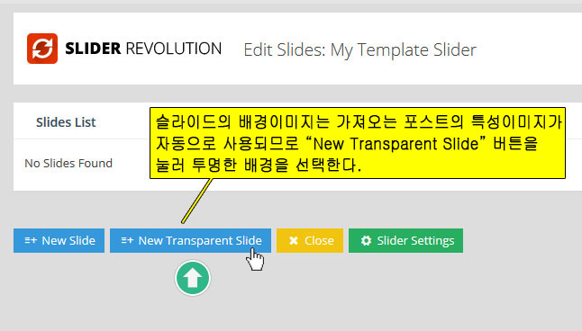 마지막으로 아래 부분에 녹색 Create Slider 버튼을 눌러 새 슬라이더를 만들어 준다.