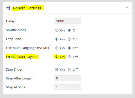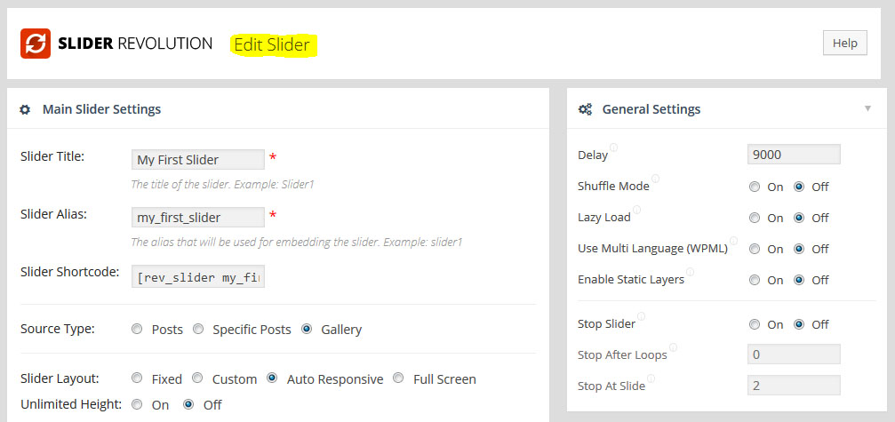 Main Slider Settings