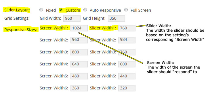 - Custom: 반응형 슬라이더를 원할땐 "Auto Responsive" 옵션이 최선이다. 그러나 만약 더욱 정교하게 슬라이더가 반응하게 되길 원한다면 Custom 옵션을 사용할수도 있다.: