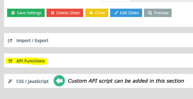 각각의 슬라이더를 위한 API 메소드(methods) 와 이벤트(events) 목록이 "API Functions"섹션 안에 있다: