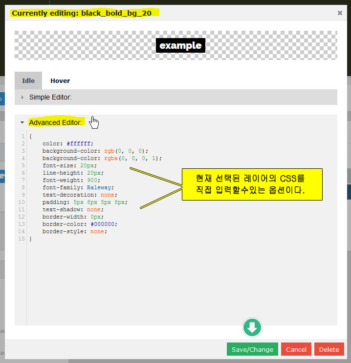 적용할 레이어의 "Edit Style"로 들어가서 메모해둔 "Font Family"를 입력한다.위의 경우 처럼 나눔고딕을 적용하려면 Nanum Gothic (대소문자 구분), 다른 서체의 링크를 가져왔다면 해당하는 폰트패밀리를 입력하면 된다.(현재 구글 Early Access Font 에 등록된 나눔서체는 다섯가지임 - Nanum Brush Script, Nanum Gothic, Nanum Gothic Coding, Nanum Myeongjo, Nanum Pen Script )