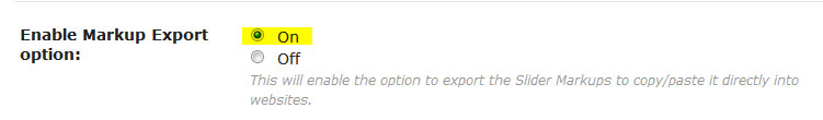 - 마크업 내보내기 옵션이 활성화된다: 메인화면의 슬라이더 리스트에 정적 HTML 페이지에서 슬라이더를 사용할수 있도록 소스코드를 생성해서 내보내 주는 버튼이 활성화 된다. 이 옵션을 활성화 하고 "Update" 버튼을 누른후 페이지를 새로 로딩하면 슬라이더 리스트 화면에 "Export HTML" 버튼이 보여질 것이다: