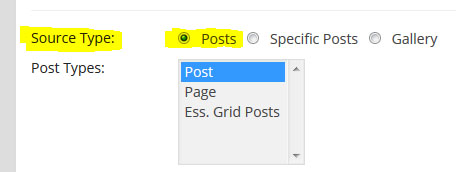 - Source Type: 만들고 있는 슬라이더에서 사용할 소스를 어디에서 가져올것인지를 선택한다. 기본값인 미디어 갤러리에서 가져오기와 포스트, 페이지,프로덕트 등 포스트타입기반 의 소스를 슬라이더의 재료로 가져올수 있다