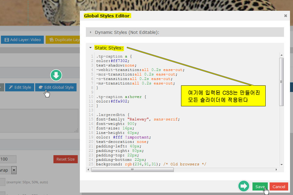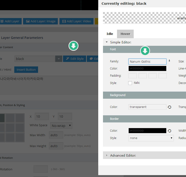 레볼루션 슬라이더내에서 나눔 폰트를 적용하는 방법은 아래와 같다.