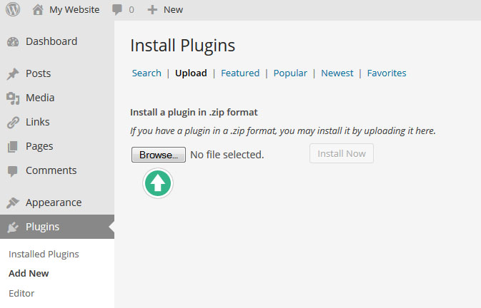 먼저 워드프레스의 메인화면에서 Plugins메뉴로 들어간후 아래 그림에서 보이는 Add New 버튼을 누른다:
