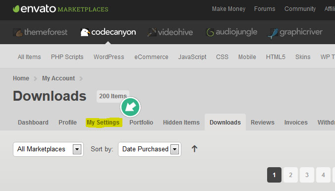 purchase code 를 얻기위해서는 다음 페이지로 이동한다: